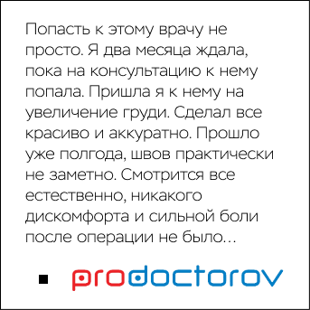 Попасть к этому врачу не просто. Я два месяца ждала, пока на консультацию к нему попала. Пришла я к нему на увеличение груди. Сделал все красиво и аккуратно. Прошло уже полгода, швов практически не заметно. Смотрится все естественно, никакого дискомфорта и сильной боли после операции не было...
